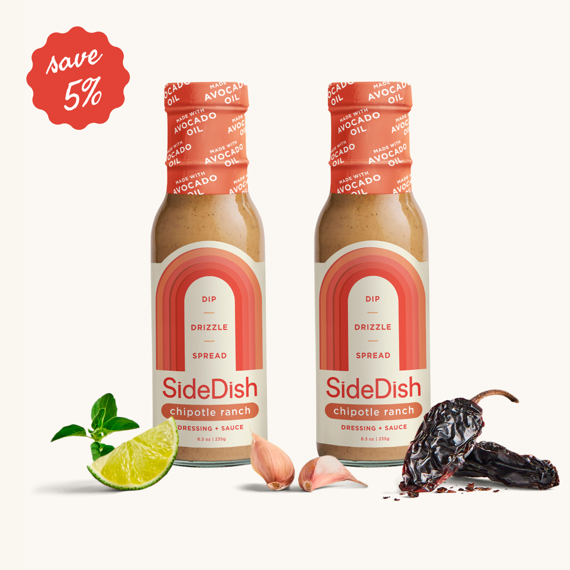 Both the Chipotle Ranch and Creamy Sesame are Whole30 Approved as they contain no dairy, gluten, grain, refined sugar or soy. Honey Dijon is not Whole30 as we use honey in this product, but it’s still made with wholesome ingredients you’d find in your pantry!